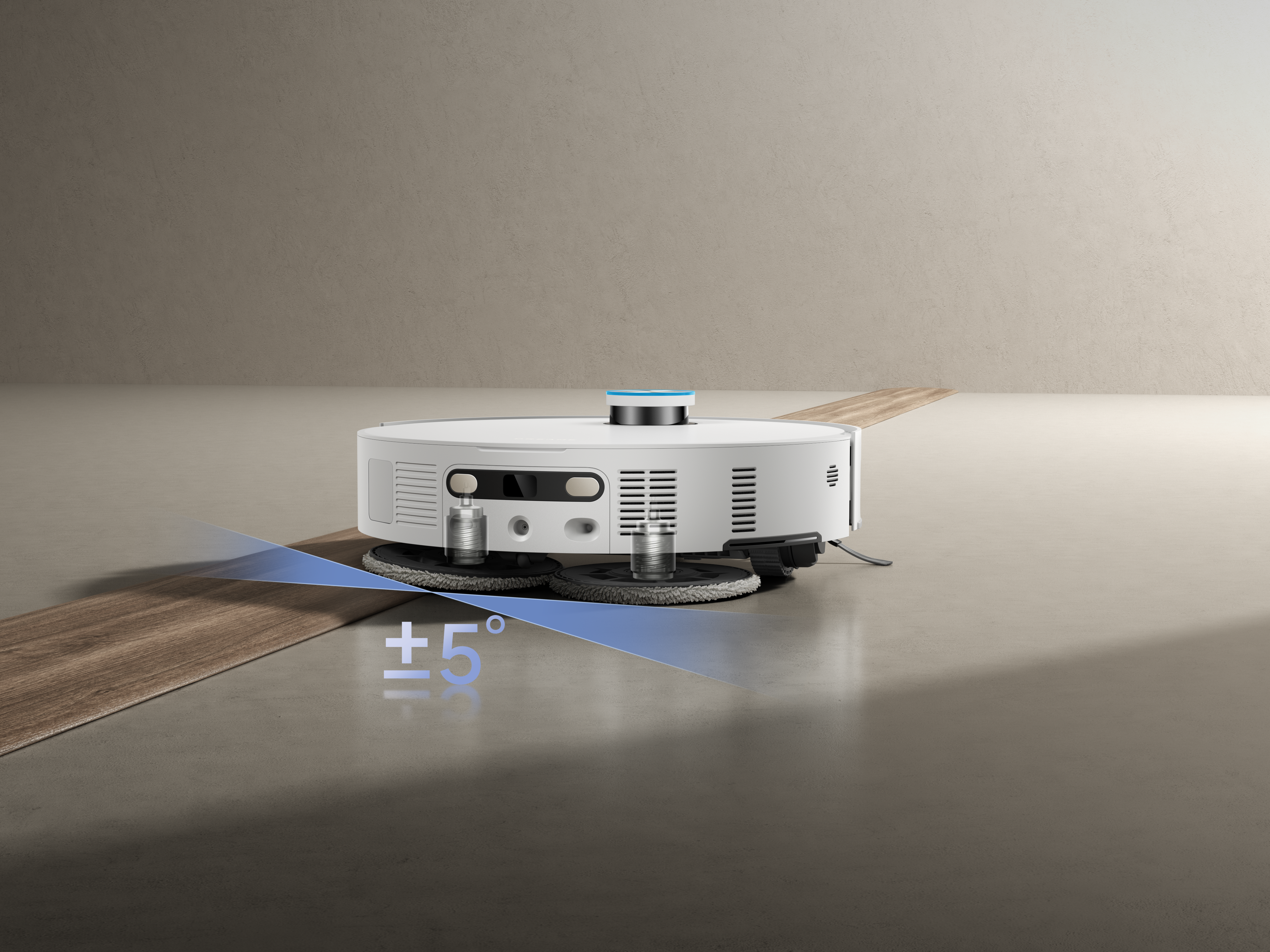 Dual Omni-Scrub mopisüsteem reguleerib automaatselt oma kaldenurka, et säilitada täielik kontakt ebatasaste põrandate ja lävepakkudega, parandades puhastustulemust tekstuursetel või kaldus pindadel.